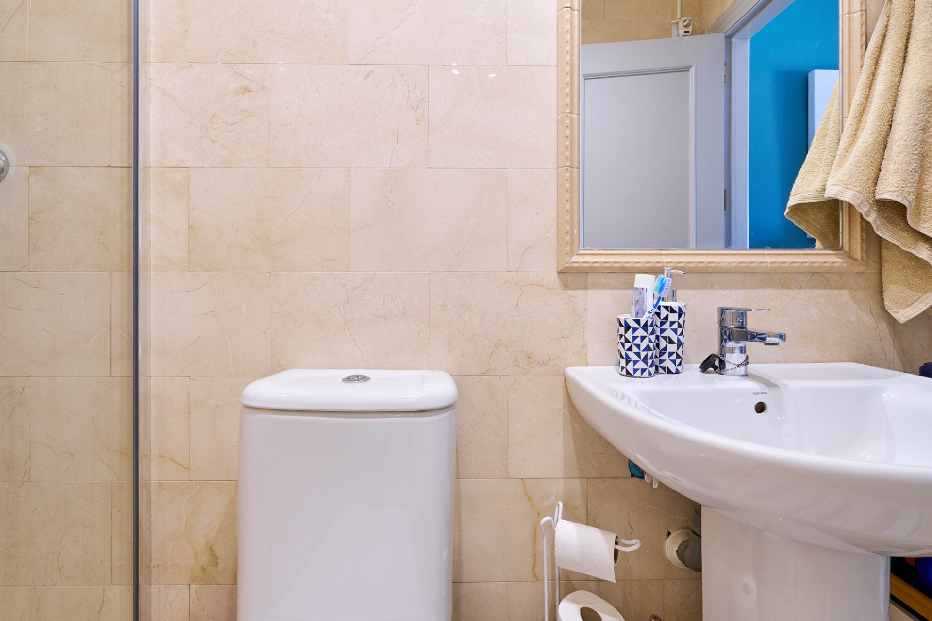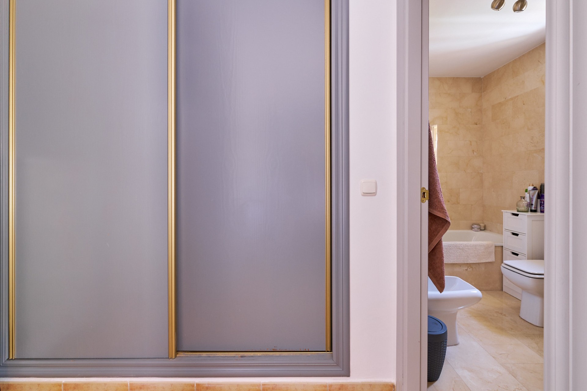 En la planta superior se encuentra la zona de descanso, compuesta por dos dormitorios de buen tamaño, ambos con baño en suite. Uno dispone de bañera y el otro de ducha, además de armarios empotrados de gran capacidad. El dormitorio principal cuenta con su propia terraza, ideal para colocar una mesa y disfrutar del entorno.