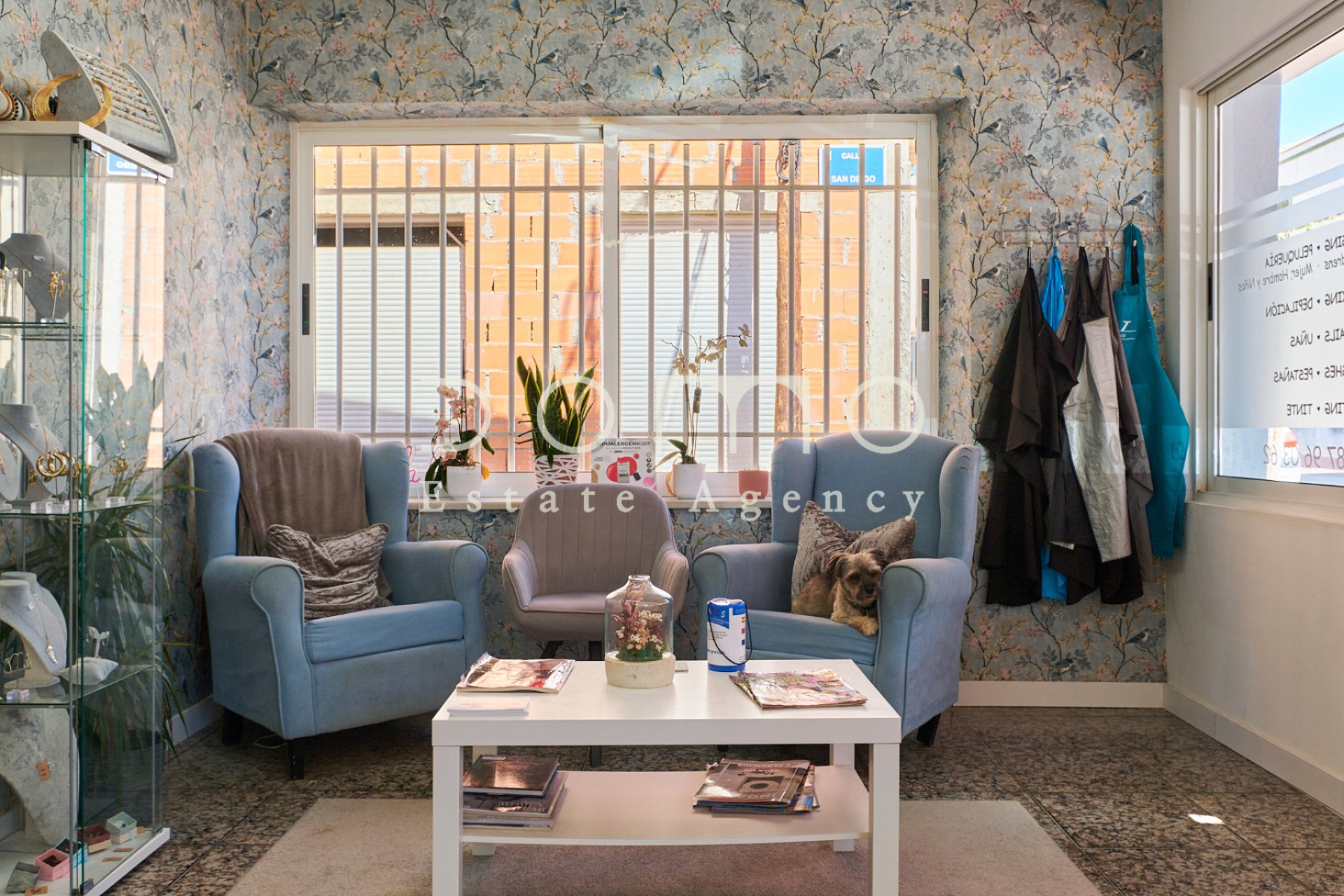 Plus loin se trouve le grand local commercial, avec accès à la Calle Mayor, l'une des zones les plus fréquentées du village. Actuellement, l'espace fonctionne avec succès comme salon de beauté en pleine activité, avec de grandes fenêtres qui apportent de la lumière naturelle et une excellente visibilité.