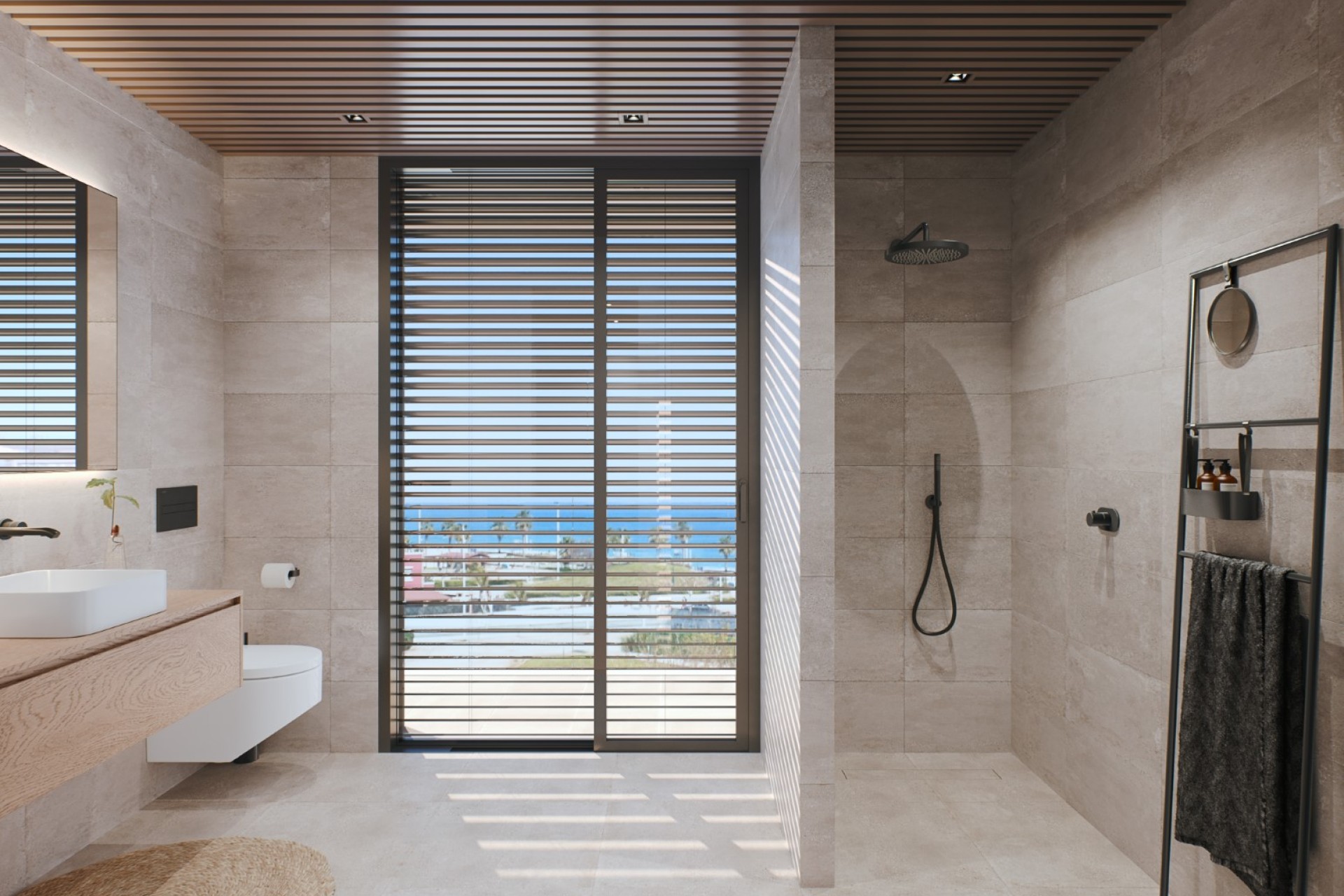 Het interieur van de villa is ontworpen om een moderne en comfortabele ruimte te bieden. Met een bebouwde oppervlakte van 344 m² en 270 m² bruikbare oppervlakte heeft de villa 5 tweepersoonsslaapkamers en 5 complete badkamers, allemaal met een hoogwaardige afwerking. De ingerichte keuken, voorzien van topkwaliteit apparatuur, integreert perfect met de ruime woon-eetkamer, waardoor een open en uitnodigende ruimte ontstaat. De inbouwkasten in de slaapkamers bieden voldoende opbergruimte. De badkamers zijn uitgerust met hoogwaardige materialen en modern design. De gekanaliseerde airconditioning zorgt voor een aangename sfeer in alle seizoenen van het jaar. Elk detail van de villa is zorgvuldig geselecteerd om maximaal comfort en luxe te garanderen.