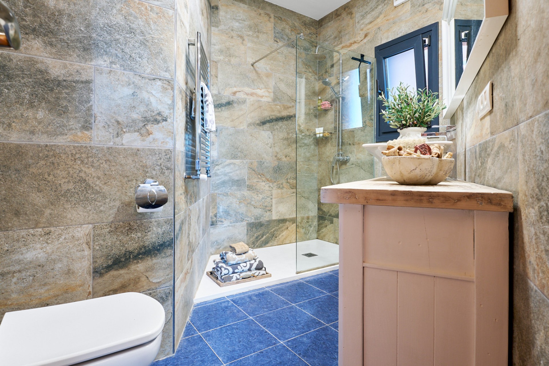 De antracietkleurige aluminium ramen en deuren met driedubbele beglazing zorgen voor thermische en akoestische isolatie, terwijl de badkamers en de keuken in een eigentijdse stijl zijn gerenoveerd. Bovendien zijn alle kamers uitgerust met airconditioning en gasradiatoren, wat het hele jaar door comfort garandeert.