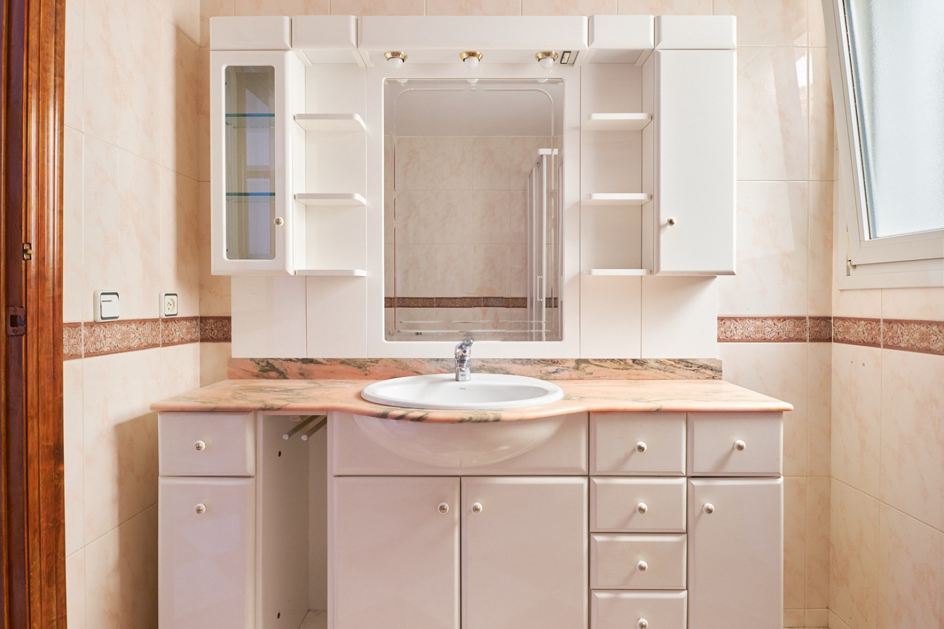 On the ground floor there is a spacious double bedroom with fitted wardrobes and air conditioning, perfect as a master bedroom at this height. There is also a large, bright living room with a fireplace, which adds a cosy touch. Opposite the living room is a full bathroom with a shower. The large kitchen, with plenty of storage space, is integrated with a dining area and has its own pantry. From here you can access the inner courtyard, a versatile space that connects different areas of the house.